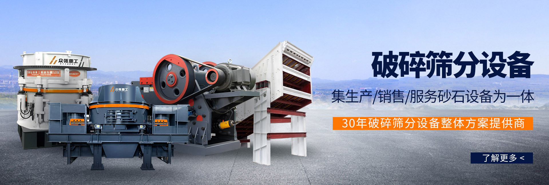 洛陽眾瓴重工機械有限公司,從事砂石行業30余年,有著豐 富的行業經驗,及研發,銷售,服務于一身。 多年來的生產 積累了大量專業經驗,研發生產多規格的破碎機、振動篩、 制砂機、移動破碎站等全套設備。從實際生產出發,緊跟時 代步伐, 不斷技術創新始終堅持從客戶的實際需求出發打造 適合屬于客戶自己的高端生產線。公司研發生產的設備廣 泛應用于建筑、礦業、冶金等眾多領域。